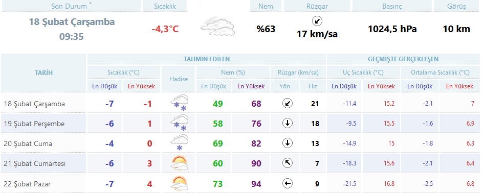 5 günlük Ankara hava durumu