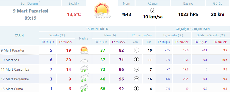 Meteoroloji Genel Müdürlüğü’nden alınan tahminlere göre 5 günlük hava durumu.