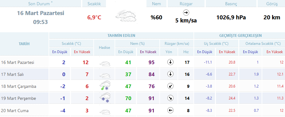 Meteoroloji Genel Müdürlüğü’nden alınan tahminlere göre 5 günlük hava durumu.