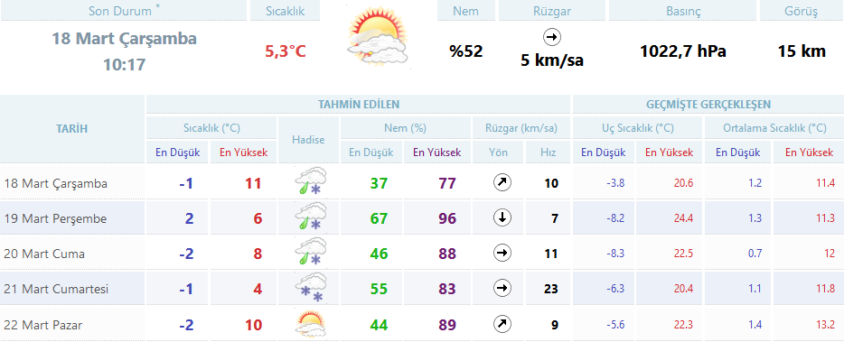 Meteoroloji Genel Müdürlüğü’nden alınan tahminlere göre 5 günlük hava durumu.