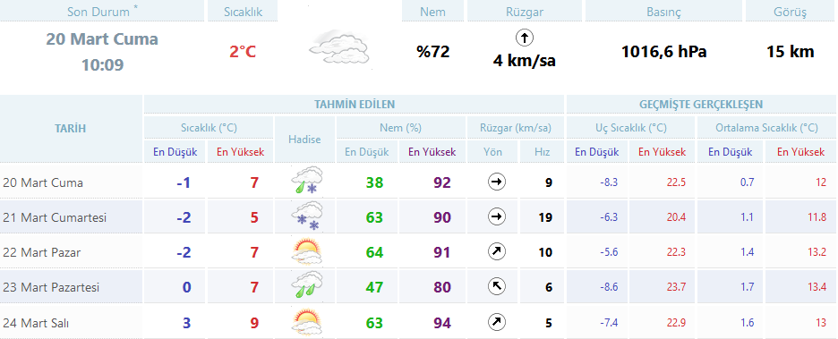 Meteoroloji Genel Müdürlüğü’nden alınan tahminlere göre 5 günlük hava durumu.
