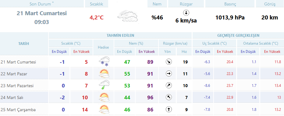 Meteoroloji Genel Müdürlüğü’nden alınan tahminlere göre 5 günlük hava durumu.