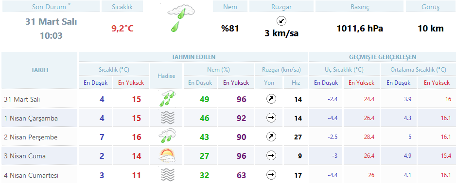 Meteoroloji Genel Müdürlüğü’nden alınan tahminlere göre 5 günlük hava durumu.