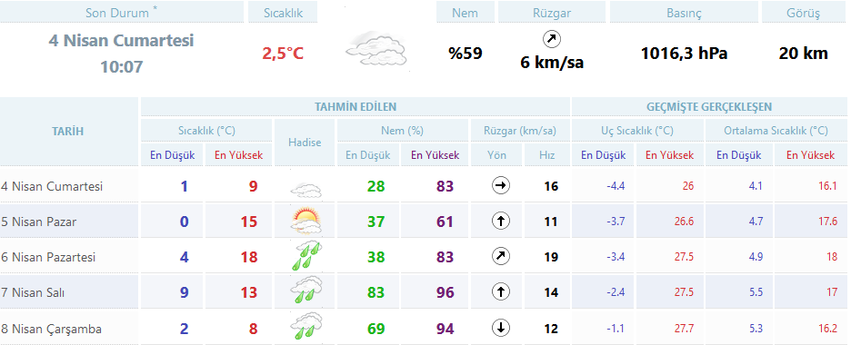 Meteoroloji Genel Müdürlüğü’nden alınan tahminlere göre 5 günlük hava durumu.