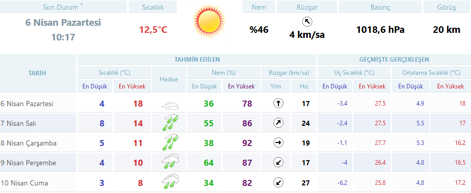 Meteoroloji Genel Müdürlüğü’nden alınan tahminlere göre 5 günlük hava durumu.
