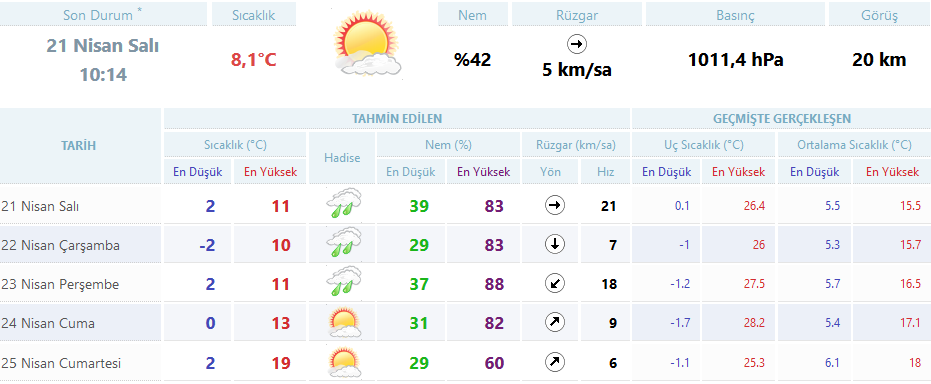 Meteoroloji Genel Müdürlüğü’nden alınan tahminlere göre 5 günlük hava durumu.