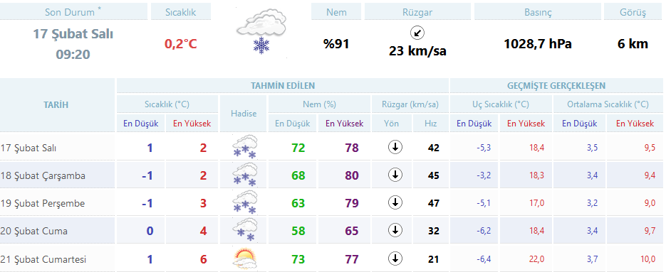 Meteoroloji Genel Müdürlüğü’nden alınan tahminlere göre 5 günlük hava durumu.