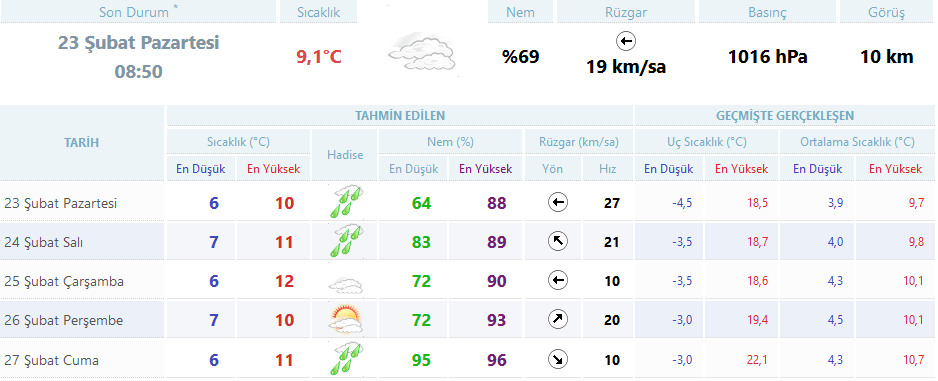 Meteoroloji Genel Müdürlüğü’nden alınan tahminlere göre 5 günlük hava durumu.