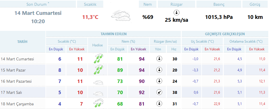 Yapılan son değerlendirmelere göre, yurdun büyük bir bölümünde aralıklarla görülecek olan yağışların akşam saatlerinde Muğla'nın kıyı kesimlerinde kuvvetli olacağı tahmin ediliyor. Yağışların genellikle yağmur ve sağanak, Kıyı Ege ile Akdeniz kıyılarında yer yer gök gürültülü sağanak, Batı Karadeniz'in iç kesimleri'nin yükseklerinde karla karışık yağmur ve yer yer kar şeklinde olması bekleniyor.