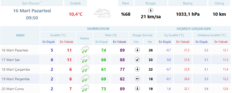 Meteoroloji verilerine göre bu ay sonuna kadar yurt genelinde sağanak yağış, Doğu Anadolu'da karla karışık yağmur var. İstanbul hava durumu ise sağanak yağışlı ve soğuk bu hafta sıcaklıklar 10 dereceyi geçmeyecek. Doğu Karadeniz'de fırtına görülebilir.
