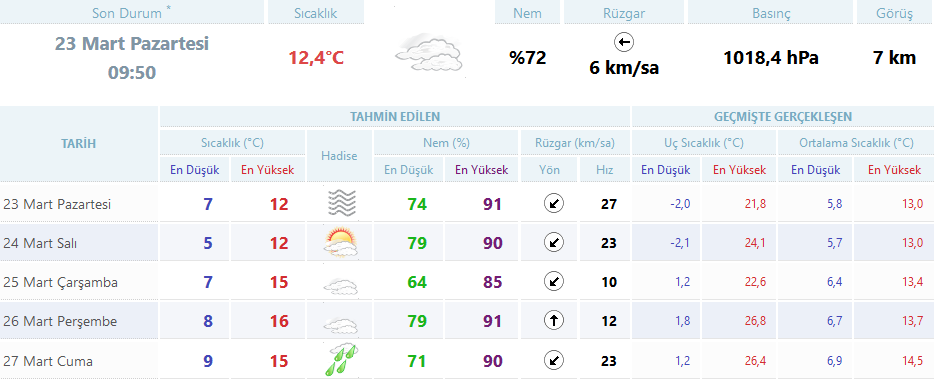 5 günlük İstanbul hava durumu