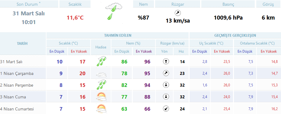 Meteoroloji Genel Müdürlüğü'nce yapılan son değerlendirmelere göre, Türkiye genelinin çok bulutlu ve aralıklı yağışlı geçeceği tahmin ediliyor. Genellikle yağmur ve sağanak yer yer gök gürültülü sağanak, Doğu Anadolu'nun kuzeydoğusunda karla karışık yağmur şeklinde olması beklenen yağışların; sabah saatlerinde Samsun, Ordu, Giresun, Tokat ve Hakkari çevreleri ile Sivas'ın kuzey ilçelerinde yerel olarak kuvvetli olması bekleniyor.
