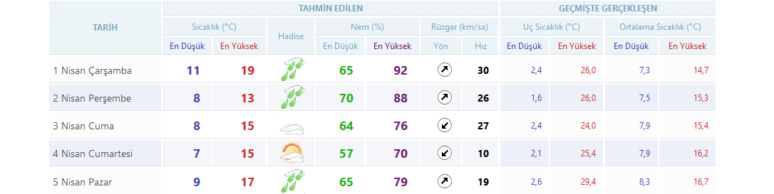Meteoroloji Genel Müdürlüğü’nden alınan tahminlere göre 5 günlük hava durumu.