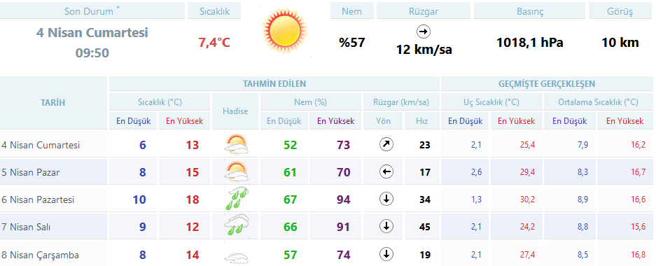 Meteoroloji Genel Müdürlüğü’nden alınan tahminlere göre 5 günlük hava durumu.