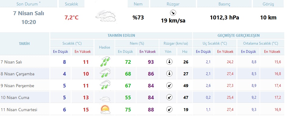 Meteoroloji Genel Müdürlüğü’nden alınan tahminlere göre 5 günlük hava durumu.