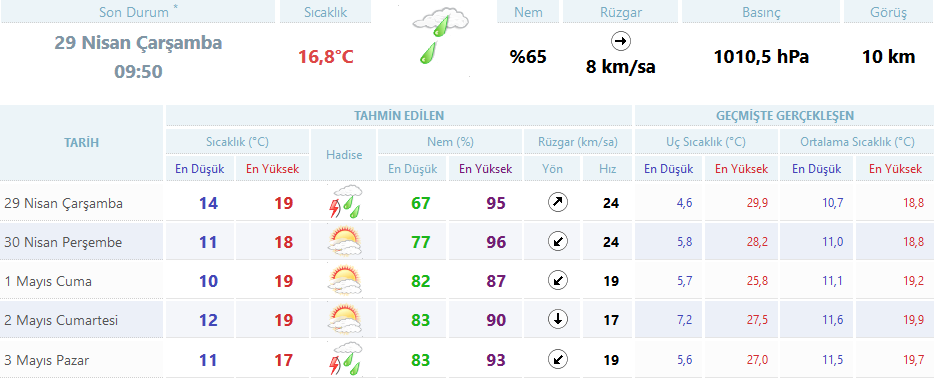 Meteoroloji Genel Müdürlüğü'nce yapılan son değerlendirmelere göre, yurdun kuzey kesimleri parçalı yer yer çok bulutlu, öğleden sonra Marmara'nın kuzey ve doğusu, Batı ve Orta Karadeniz ile Ankara, Eskişehir, Çankırı, Sivas, Kayseri, Trabzon, Giresun ve Gümüşhane ile Nevşehir'in doğu ilçelerinin sağanak ve gök gürültülü sağanak yağışlı, diğer yerlerin az bulutlu ve açık geçeceği tahmin ediliyor.
