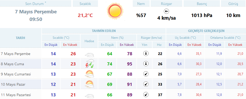 Meteoroloji Genel Müdürlüğü'nce yapılan son değerlendirmelere göre, Türkiye'nin doğusu ile zamanla kuzeybatısının parçalı ve çok bulutlu, akşam saatlerinden sonra Edirne, Kırklareli, Tekirdağ, İstanbul çevreleri; gece saatlerinde Marmara bölge geneli ile Kütahya'nın kuzey çevrelerinin sağanak ve yer yer gök gürültülü sağanak yağışlı, diğer yerlerin az bulutlu ve açık geçeceği tahmin ediliyor. Yağışların; gece saatlerinde Edirne, Kırklareli, Tekirdağ'ın iç kesimleri, yarın sabah saatlerinde Bursa, Yalova ve Balıkesir'in kuzey ve doğu kesimlerinde yerel olarak kuvvetli olması bekleniyor.