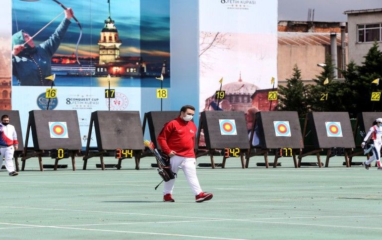 Cumhurbaşkanlığı himayelerinde, Gençlik ve Spor Bakanlığının desteğiyle Okçular Vakfı tarafından İstanbul'un fethinin 567. yıl dönümü kutlamaları kapsamında düzenlenen 8. Fetih Kupası okçuluk yarışmaları, sıralama ve bireysel elem...