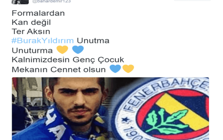 - 12 Mayıs 2013 tarihinde Galatasaraylı taraftarlar tarafından bıçaklanarak öldürülen Burak Yıldırım'ı Fenerbahçeli taraftarlar yine unutmadı...