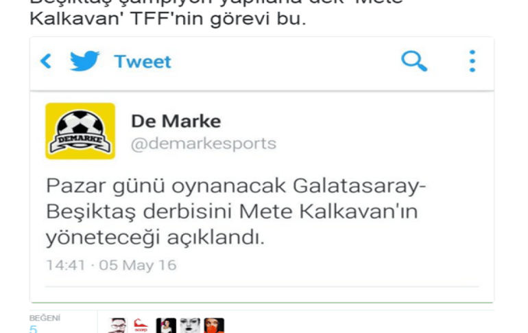 - Galatasaray-Beşiktaş derbisine Beşiktaşlı Mete Kalkavan'ın atanmasına Galatasaray ve Fenerbahçe taraftarları tepki gösterdi.