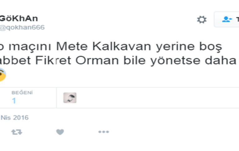 - Fenerbahçeliler Gaziantep maçına Mete Kalkavan'ın atanmasına sosyal medyadan tepki gösterdi.