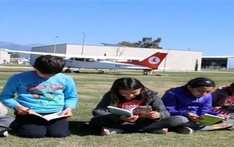 AYDIN / AA - İl Kültür ve Turizm Müdürlüğünce 55. Kütüphane Haftası dolayısıyla, Türk Hava Yolları Uçuş Akdemisinin bulunduğu Çıldır Havaalanı'nda kitap okuma etkinliği düzenlendi.
